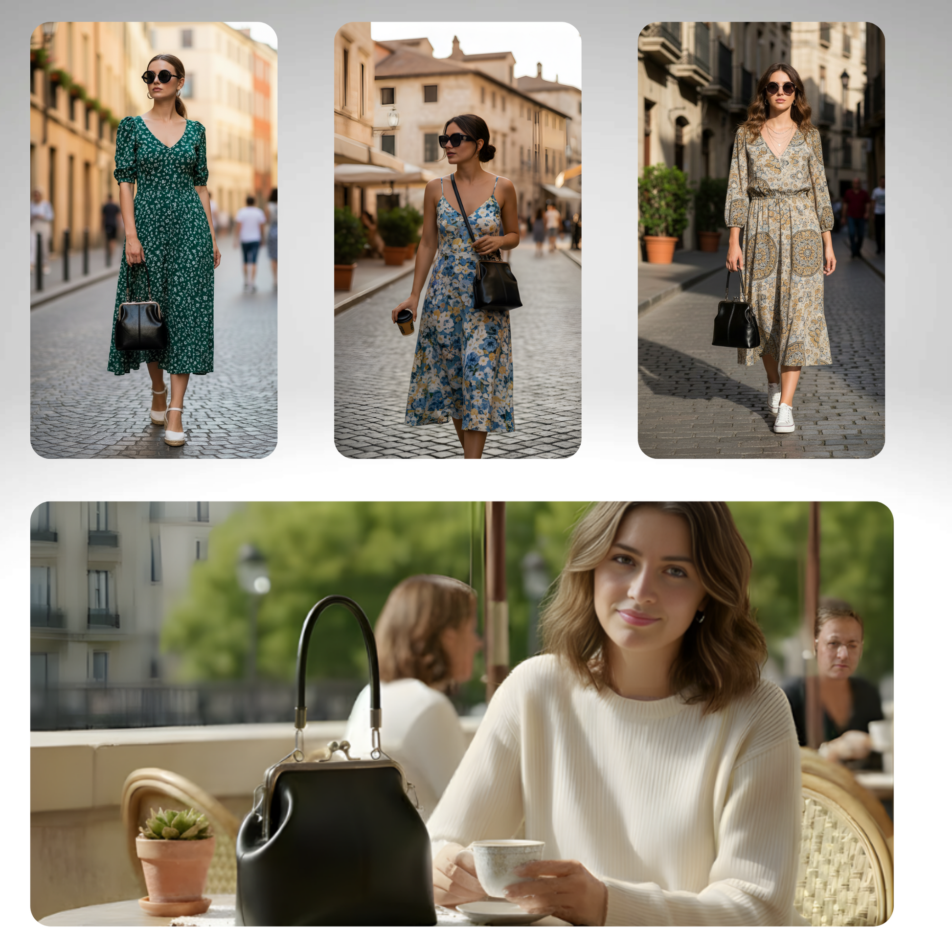 Este bolso de mano vintage combina estilo retro y funcionalidad diaria en un diseño elegante y versátil. Su cierre de beso aporta un toque sofisticado, mientras que su uso como bandolera o bolso de hombro lo hace cómodo para cualquier ocasión. Un accesorio pensado para mujeres que quieren estilo sin renunciar a practicidad ✨